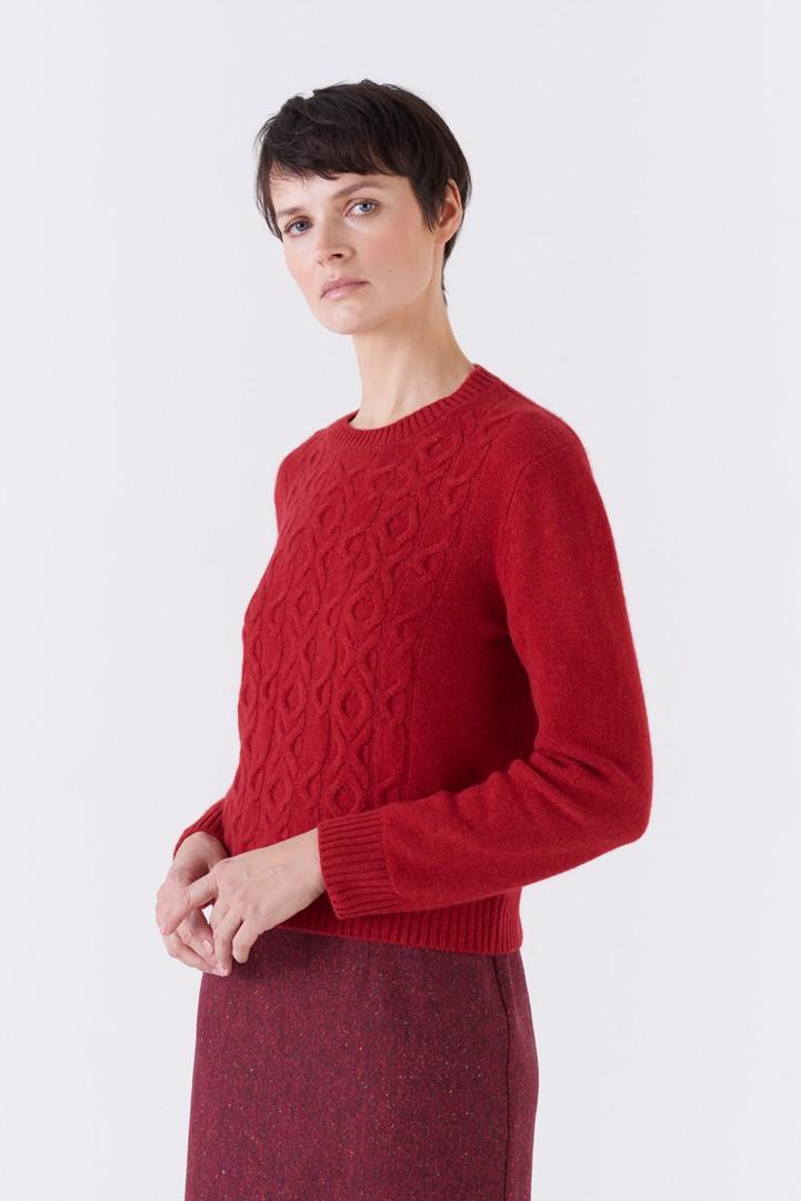 Pull girocollo in cashmere con trecce in rilievo