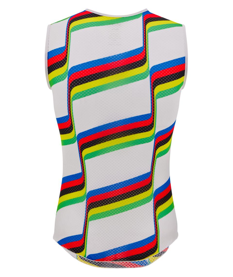 Maglia intima senza maniche relizzata in tessuto elasticizzato a rete per garantire massimo comfort e traspirabilità, anche durante le giornate più calde. Il taglio allungato offre la massima protezione senza infastidire quando la indossi sotto la maglia. Il design prende ispirazione dal poster ufficiale dei Campionati del Mondo UCI di Colorado Springs del 1986.